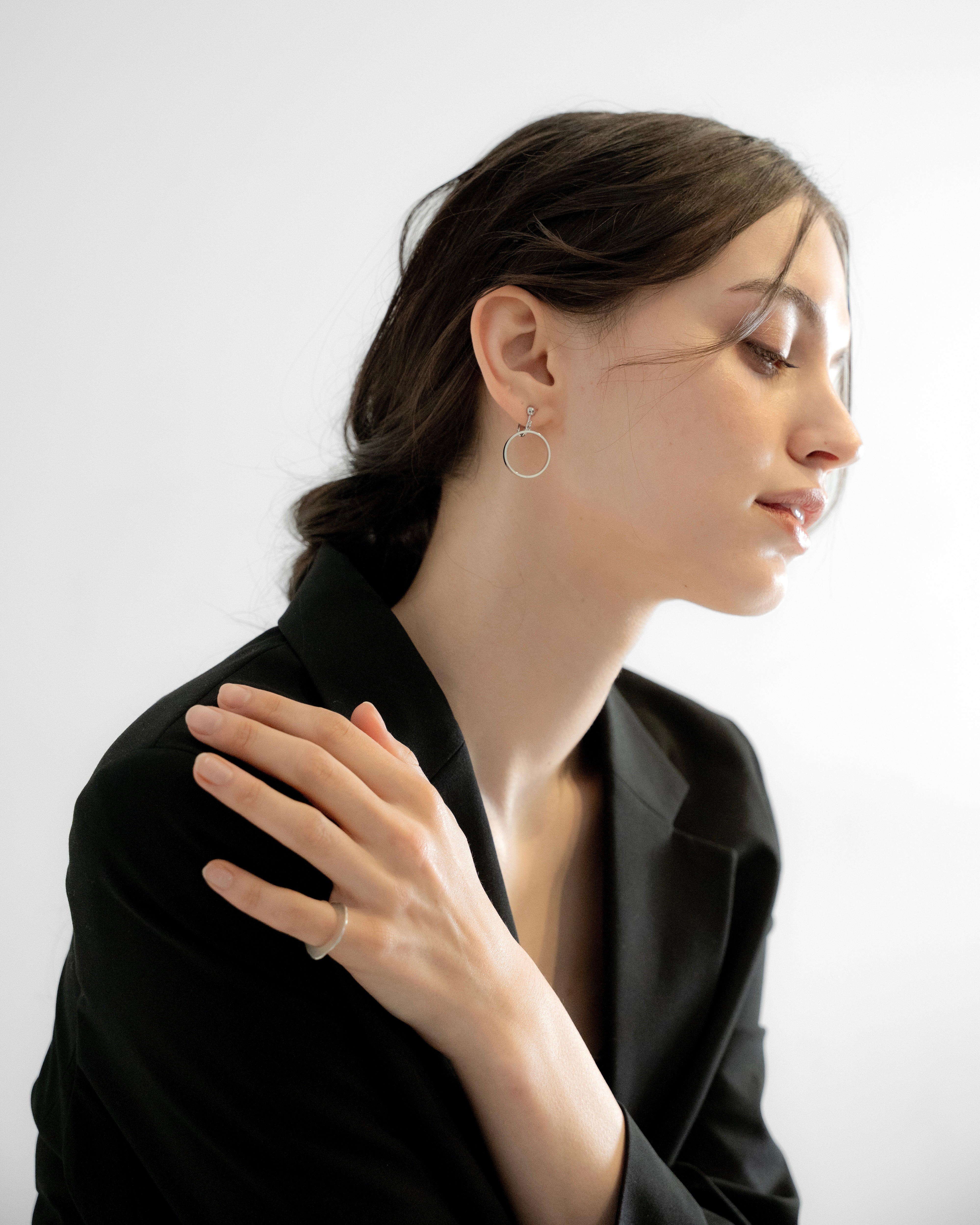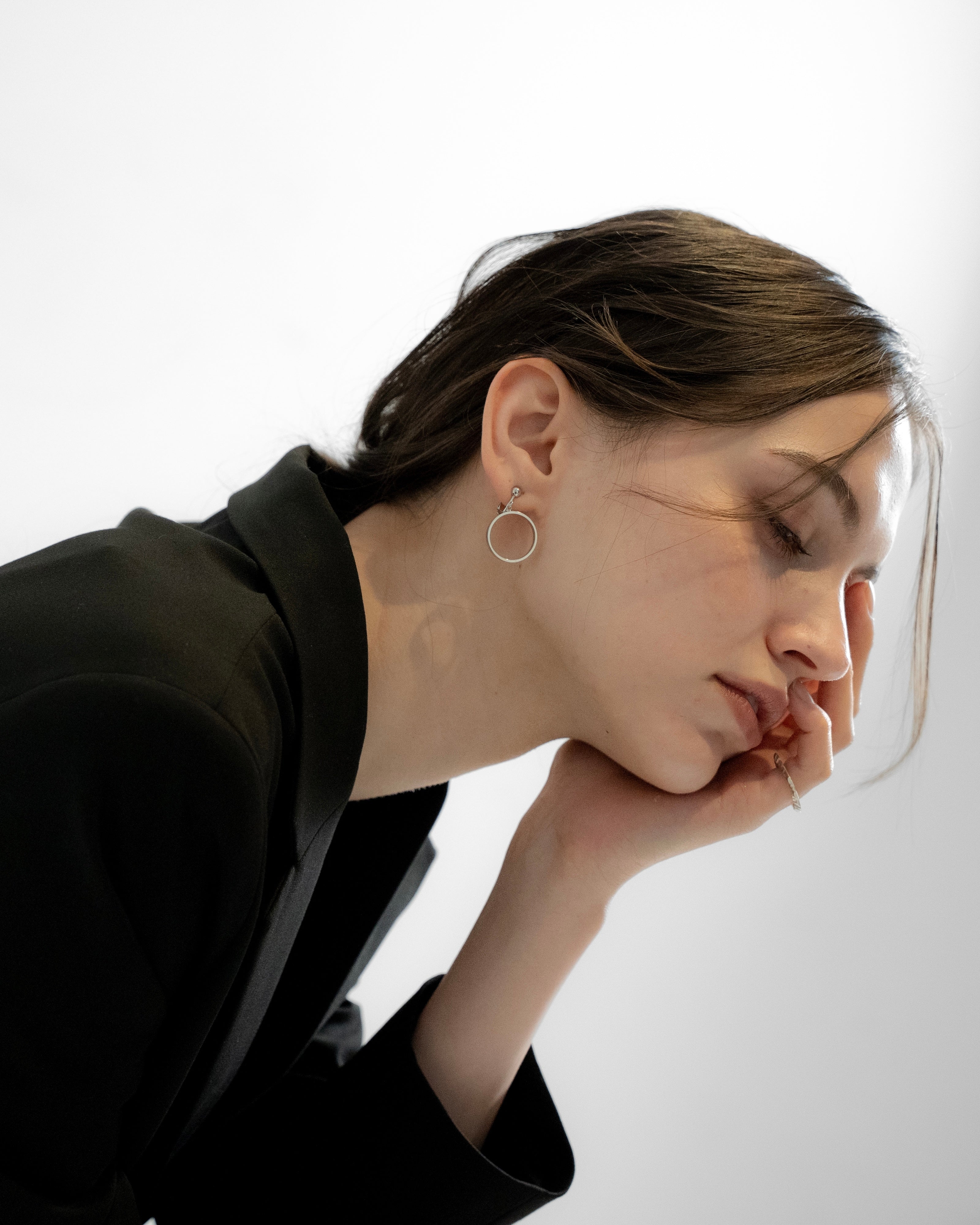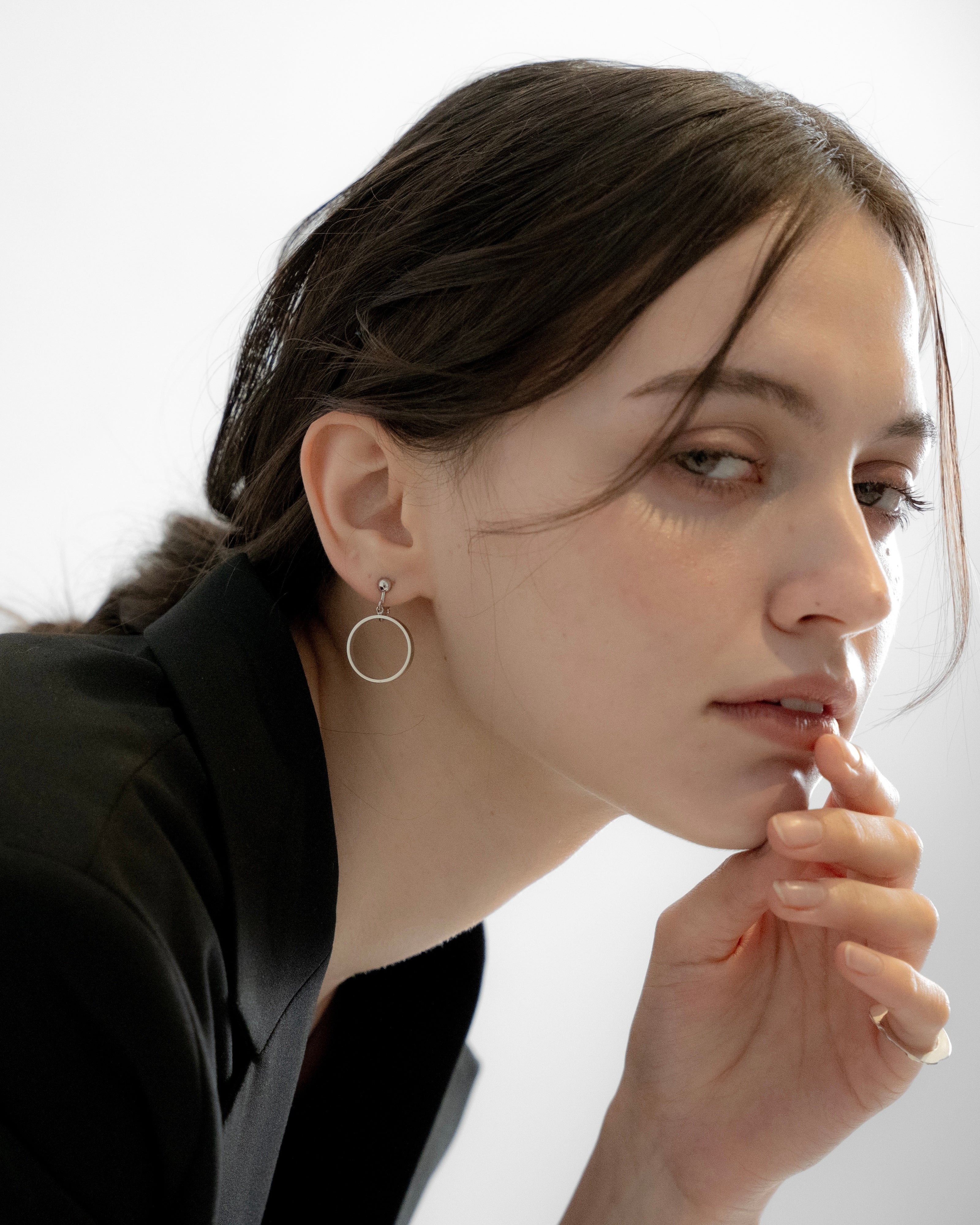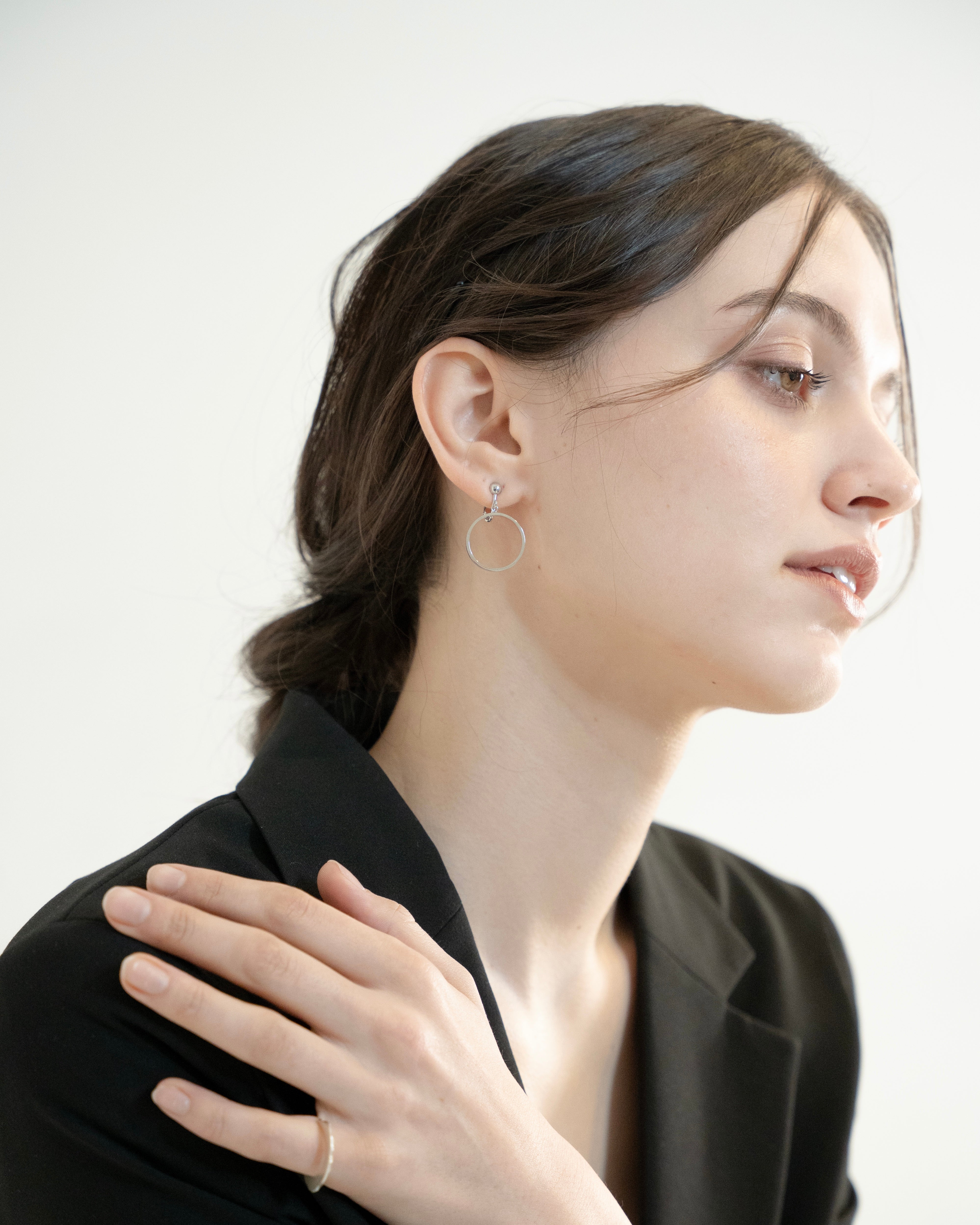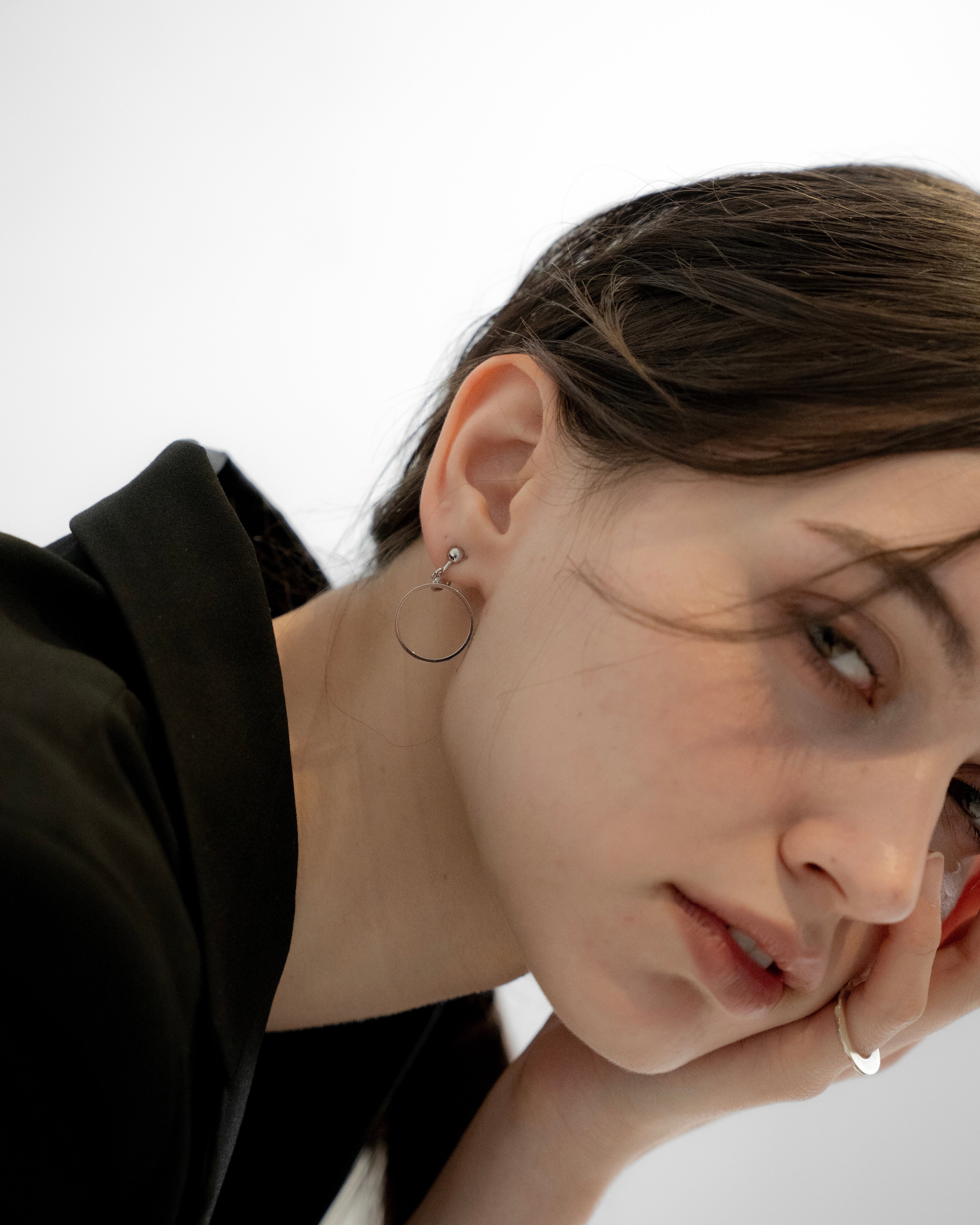 「Whole note」/ Earring 耳もとでゆれたとき キラッと輝くイヤリング。 絶妙なサイズ感が 「自然に目を引く」アクセサリー。 Antique gold 上品なアンティークの風合い。 前から見ても横から見ても美しくなるように。 ユニセックスに着用できる スタイリッシュなフォルム。 気分を変えたいときの秘策として。 Silver ゆれて反射するシルバーの輝き。 スタンダードながら、ありそうでなかった形 ツヤがもたらす華やかさを耳もとに。